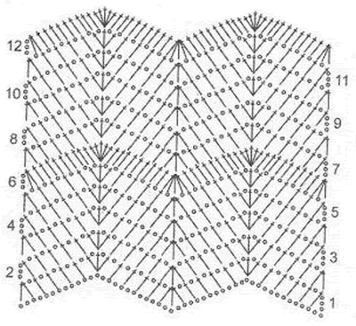 Набрав начальное количество петель, заведомо большее, чем объем ваших бедер, можете прибавлять петли, корректируя силуэт юбки, выполняя для прямой части юбки узоры, где в ряду количество петель не увеличивается (число накидок равно количеству петель, провязанных вместе), или расиирпъ полотно только за счет накидов. Раппорты узоров для таких юбок мопт повторятся в ряду несколько раз, приобретая силуэт 4,5, 6 - ти клинок и т. д. Зная секреты некоторых узоров, можно выполнять нижний край юбки углами, придавая ей летящий силуэт.